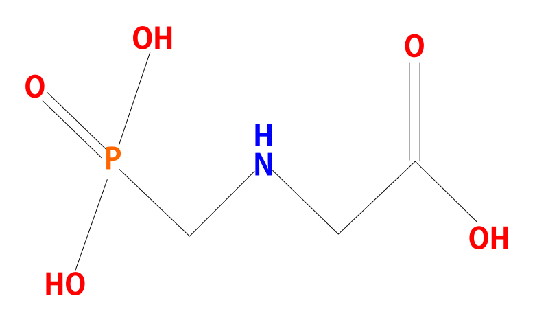 グリホサート(N-(ホスホノメチル)グリシン。分子式C3H8NO5P)は,1970年に米国の企業モンサントが開発した除草剤のラウンドアップ(商品名)の有効成分です。